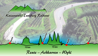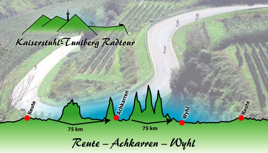 Starten Sie auf einen der Rundkurse über 75, 107 km und genießen Sie auf ausgeschilderter Strecke die herrlichen Landschaften zwischen Tuniberg und Kaiserstuhl. Von der Eichmattenhalle in Reute geht es entlang von Tuniberg und Kaiserstuhl (je nach Streckenwahl auch darüber) zum nächsten Startort Achkarren um weiter am/über den Kaiserstuhl bis nach Wyhl zu gelangen. Erholen Sie sich in der Rheinebene auf den Weg zurück nach Reute.